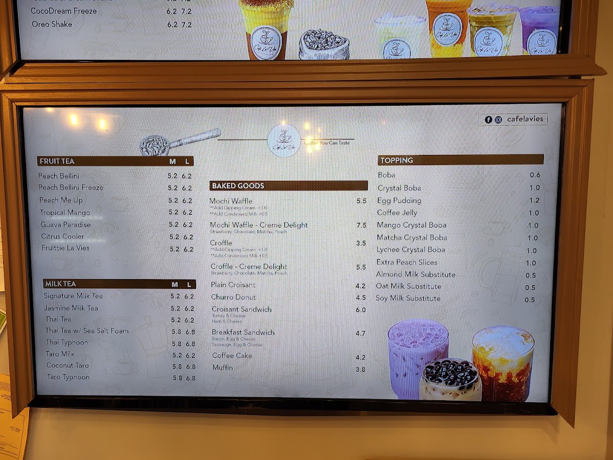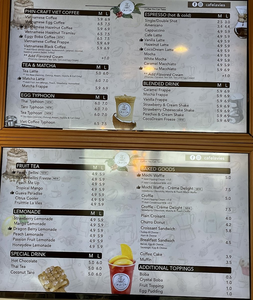 Cafe La Vies boasts an enticing menu that caters to both coffee lovers and those seeking refreshing beverages. Dive into the vibrant world of their fruit teas, featuring options like the Fruittie La Vies and Mango Fruit Tea, each priced at just $6.90. These large-sized delights are crafted with freshly brewed tea and infused with delightful flavors, topped with fresh fruits that burst with flavor. For a special treat, don’t miss their Guava Paradise, a popular concoction marrying green tea with guava, designed to transport your taste buds to a tropical escape.